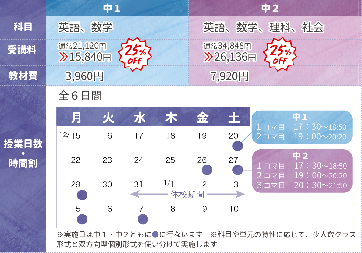 《中1・中2》少人数制講座