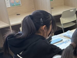 校舎に教科書や教材がいろいろあって、わからない問題があるとすぐに調べることができました。